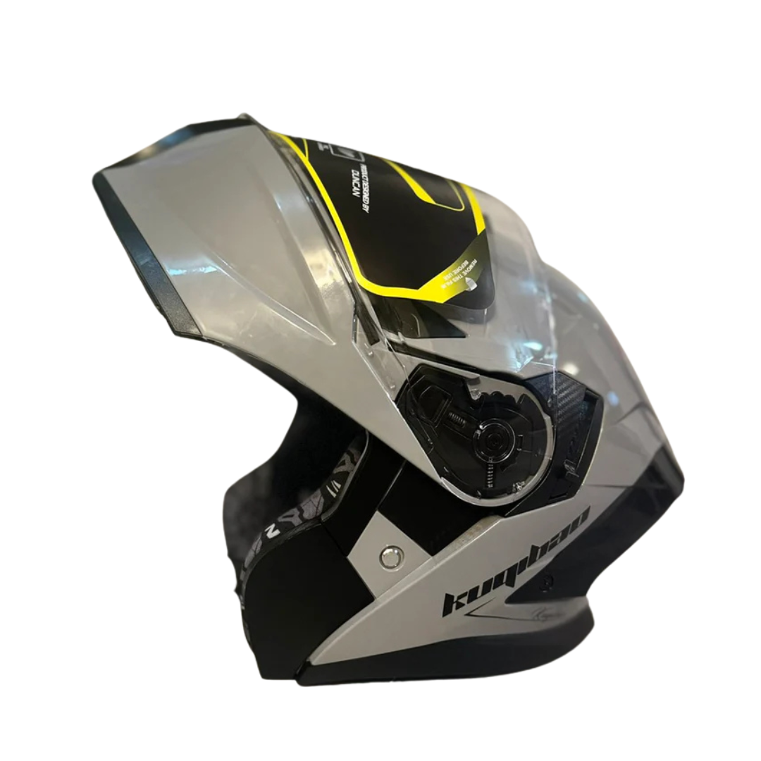 Flip up kaciga sa Integrisanim Naočarima (modularna kaciga) kombinuje sigurnost zatvorene kacige i praktičnost otvorenog modela. Zahvaljujući podiznom prednjem delu, omogućava lakše komuniciranje i veću praktičnost tokom vožnje i zaustavljanja.