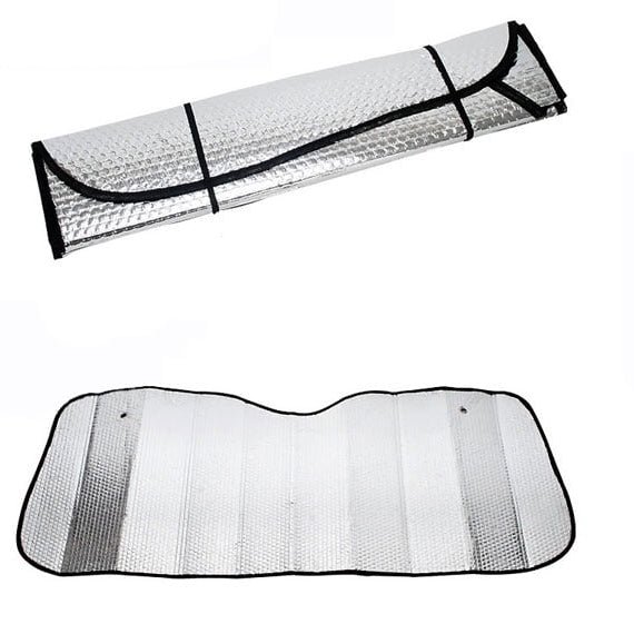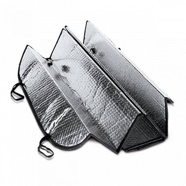 Klasični suncobran za vetrobransko staklo (140x70 cm) pruža efikasnu zaštitu od pregrevanja i oštećenja enterijera. Reflektujući aluminijumski sloj odbija toplotu i UV zrake, čuvajući tvoj volan, sedišta i instrument tablu.
